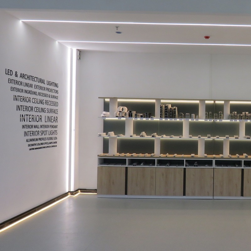 Il sistema di profili di alluminio estruso per strisce luminose a LED consente la progettazione di dispositivi di illuminazione di qualsiasi dimensione e forma desiderata.i profili di appendiabiti e di montaggio in superficie possono essere dotati di luci RGB e Day LED calde e calde, e l'intensità della luce è regolabile.